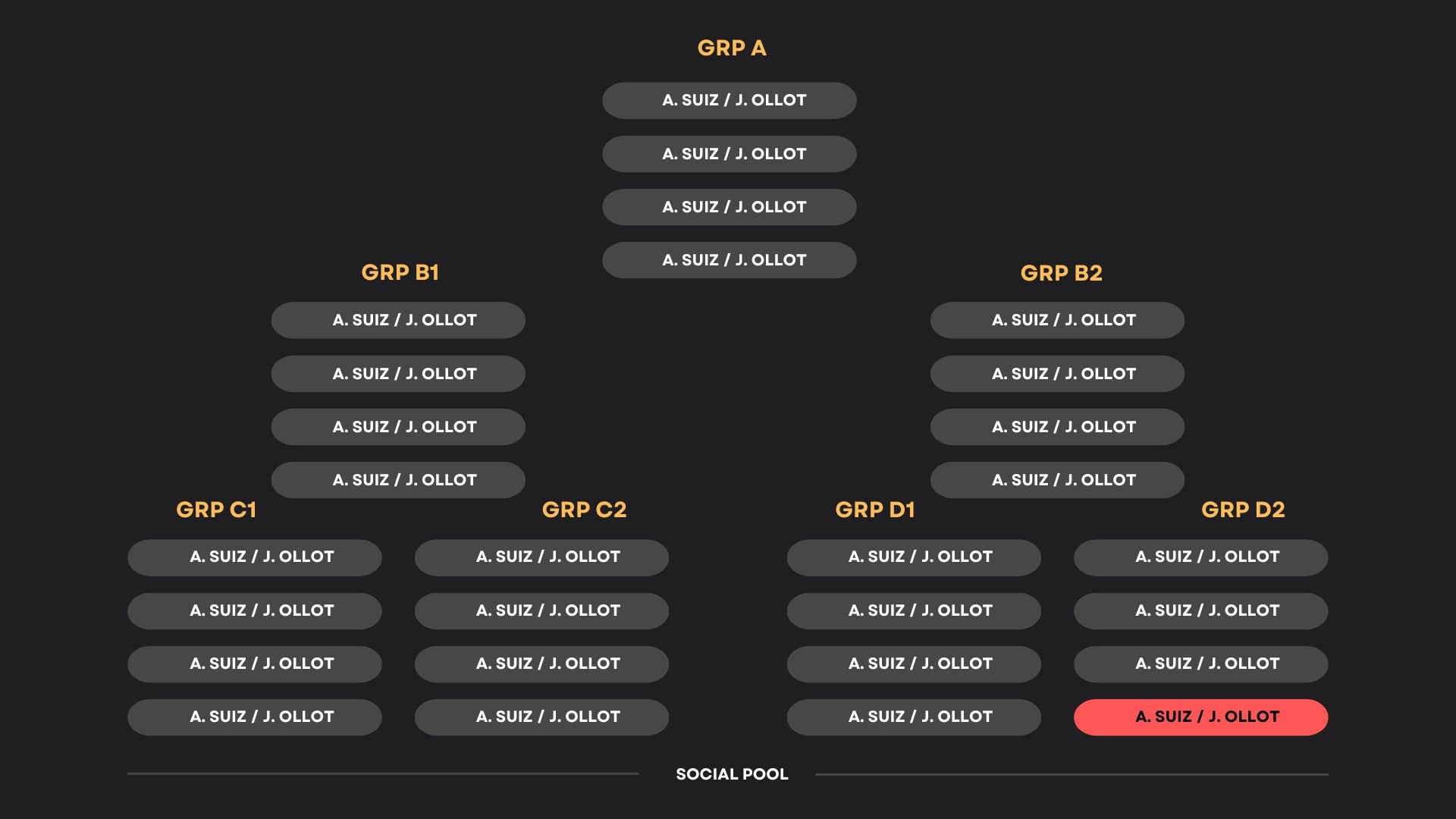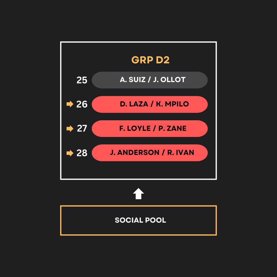 Anyone in the Social Pool can challenge any of the bottom 3 (26, 27, 28) of the D2 (last group). The Top 1 of the group cannot challenge another top 1 in another group.